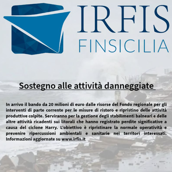 Ciclone “Harry”: da IRFIS-FinSicilia aiuti alle imprese colpite dal maltempo