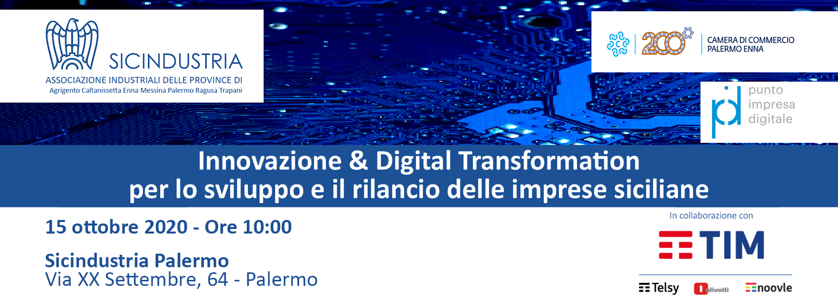 Sicindustria ha il piacere di invitare la S.V. alla tavola rotonda Agenda dei lavori · Benvenuto · Le opportunità offerte dalla digitalizzazione: a che punto siamo? · Valorizzare le PMI con la trasformazione digitale · Le reti cellulari al servizio della digitalizzazione: tecnologie abilitanti e applicazioni verticali · Attività d'impresa - web reputation- diritto all'oblio · La cultura della cibersecurity · Secure mobile communications e Smartworking · I servizi del Punto Impresa Digitale della CCIAA Palermo Enna · Conclusioni · Q&A · Coffee & Snack