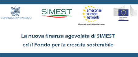 SIMEST, in collaborazione con Enterprise Europe Network e Confindustria Palermo, organizza un Workshop sulla nuova finanza agevolata di SIMEST e il Fondo per la crescita sostenibile che si terrà il 30 novembre, presso la sede di Confindustria Palermo, in Via XX Settembre 64 alle ore 15.00.