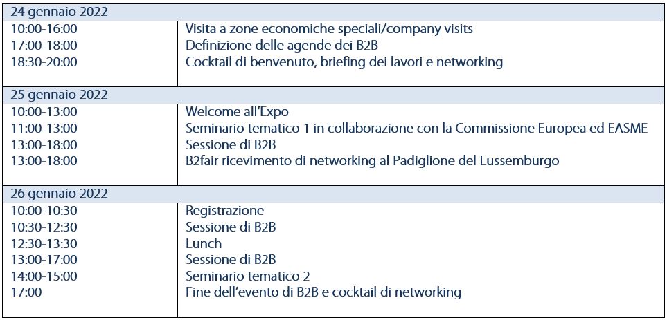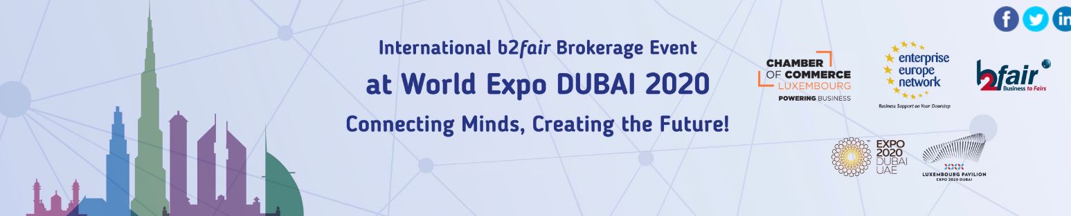 Sicindustria, partner di Enterprise Europe Network, promuove e coorganizza l’evento di brokeraggio internazionale organizzato dalla Camera di Commercio del Lussemburgo (EEN Lussemburgo), che si svolgerà ad Expo Dubai dal 24 al 26 gennaio 2022.
