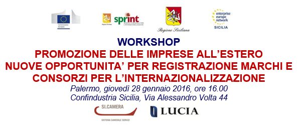 Il workshop, che si svolgerà giovedì 28 gennaio, presso Confindustria Sicilia, via Alessandro Volta 44, è organizzato da Confindustria Sicilia in collaborazione con i partner della rete Enterprise Europe Network Sicilia (Consorzio Arca e Consorzio Catania Ricerche), con lo Sprint Sicilia, con Si.Camera, con lo Studio Lucia e con lo Studio Mercadante.