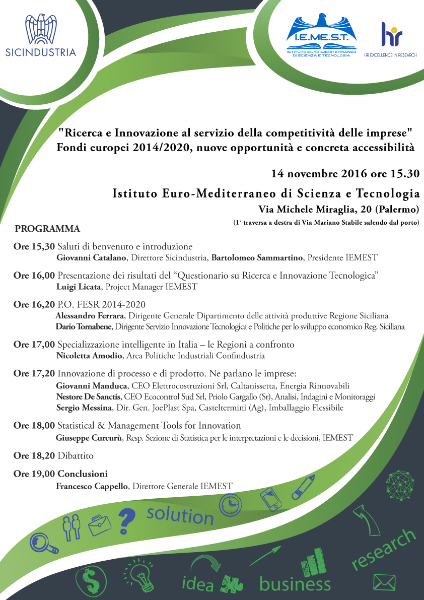 - ´Ricerca e Innovazione al servizio della competitività delle imprese´ Fondi europei 2014/2020, nuove opportunità e concreta accessibilità