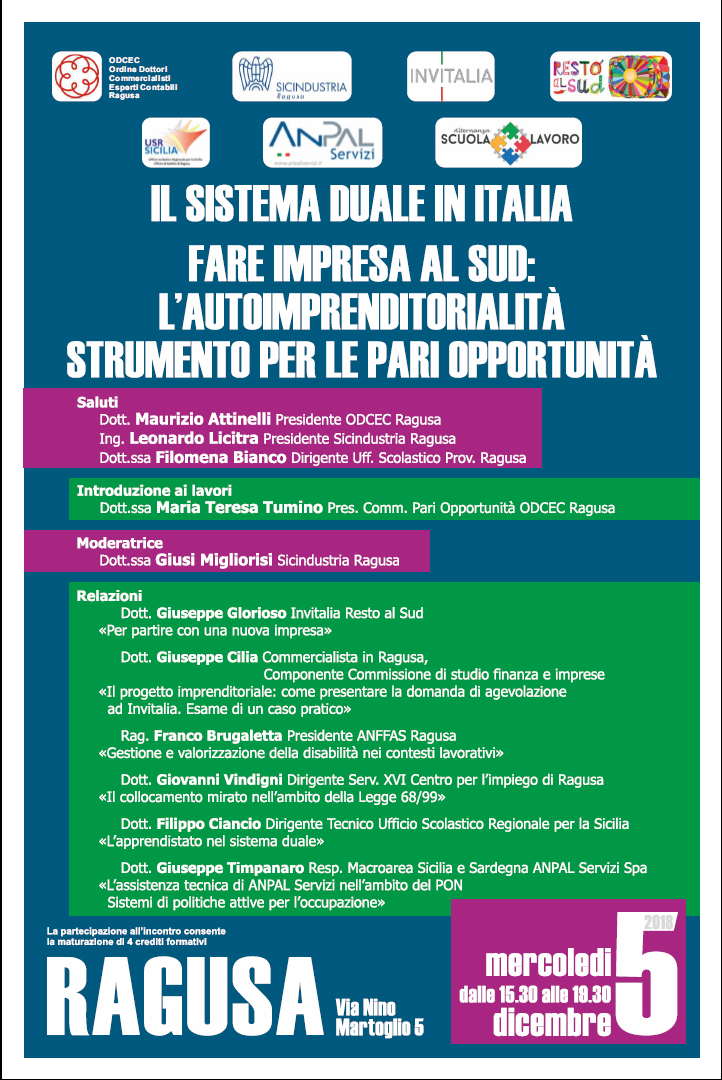 - Sicindustria Ragusa - seminario Il sistema duale in Italia Fare impresa al Sud: L’Autoimprenditorialità strumento per le pari opportunità